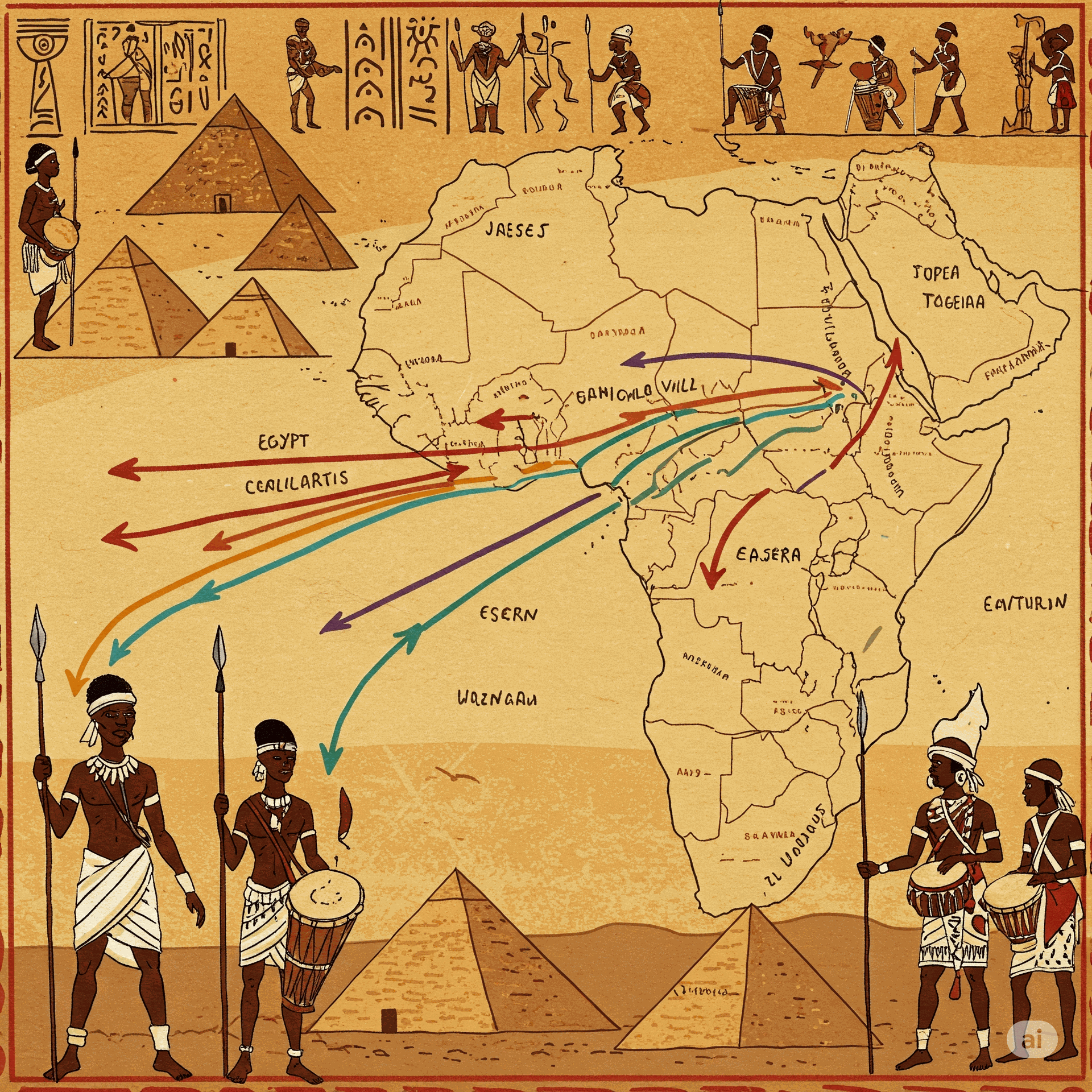 Adicionalmente, estudos arqueológicos identificam objetos culturais e padrões de enterramento que indicam movimentações populacionais do norte para o sul ao longo do Nilo (Shillington, 2005). Esses dados, aliados às rotas descritas por narrativas orais, desenham um quadro de migração contínua, permeada por trocas e adaptações culturais ao longo de séculos.