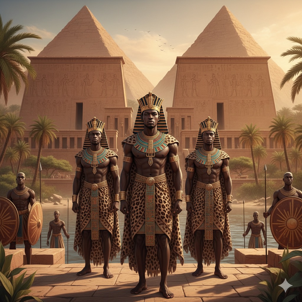 As feições, a cultura e as tradições dos primeiros egípcios eram reflexo direto do povo do Alto Nilo — africanos negros que construíram um império espiritual e científico admirado até hoje.