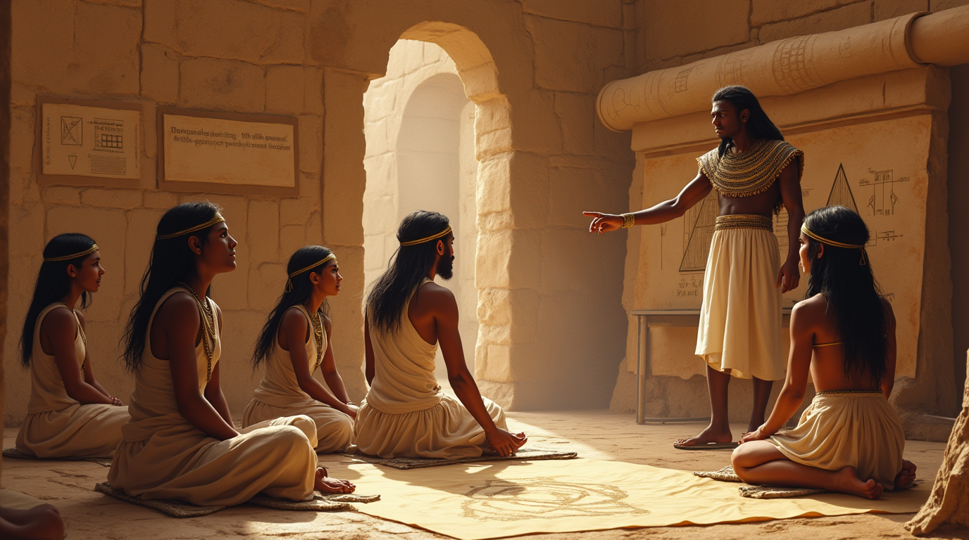 Estamos falando de civilizações milenares que floresceram no continente africano, particularmente no Antigo Egito e na Núbia. Registros em papiros e construções monumentais indicam que os egípcios dominavam a aplicação do que hoje chamamos de Teorema de Pitágoras em suas obras de engenharia e arquitetura. Eles usavam cordas com nós para formar triângulos com lados de proporções 3, 4 e 5, o que garantia um ângulo reto perfeito – essencial para a construção de pirâmides, templos e canais de irrigação. Essa prática era comum entre os "esticadores de corda" (harpedonaptos), que eram os agrimensores da época.